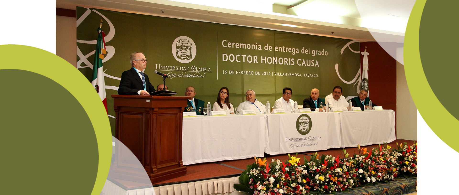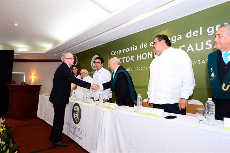 La Universidad Olmeca (UO) entregó el distintivo Honoris Causa al Doctor español Luis